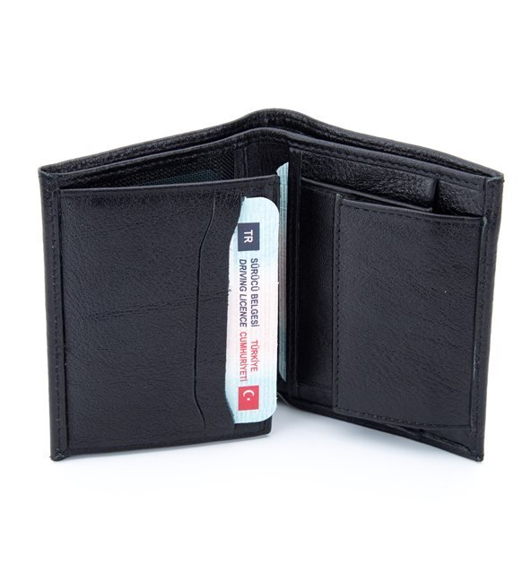 Dikey Model Yumuşak Siyah Renk Deri Erkek Cüzdan,