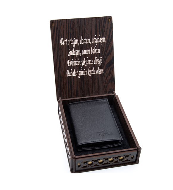Ahşap Kutulu Hakiki Deri Erkek Cüzdan