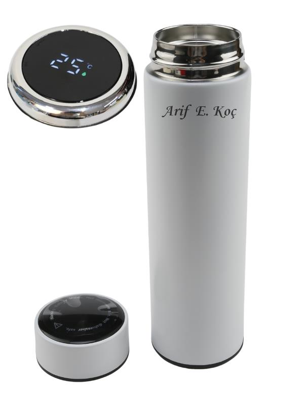 Dijital Göstergeli Termos Kişiye Özel 500 ml Beyaz