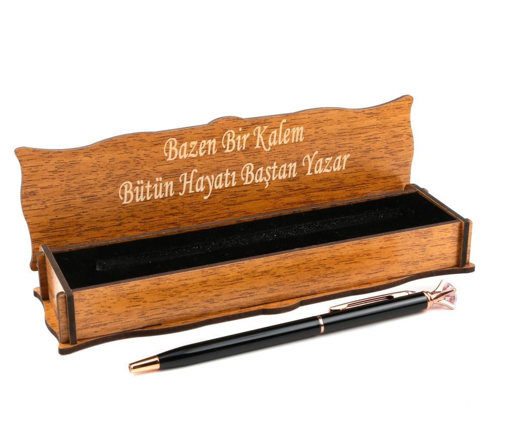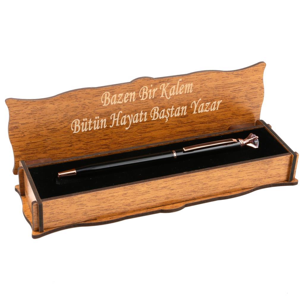 Elmas Başlıklı Kişiye Özel Ahşap Kutulu İsimli Tükenmez Kalem KHTKS335