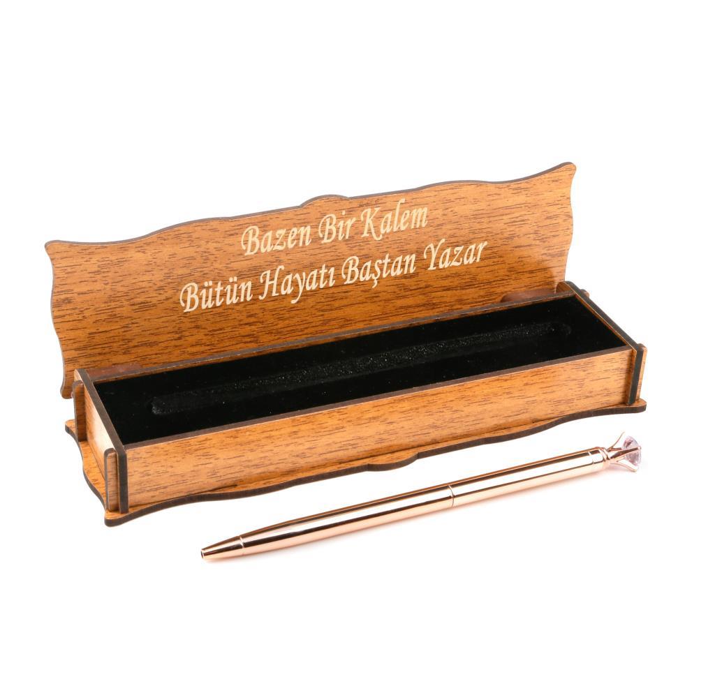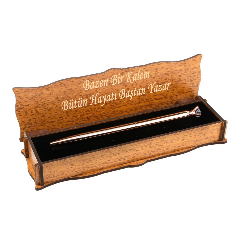 Elmas Başlıklı Kişiye Özel Ahşap Kutulu İsimli Tükenmez Kalem KHTKS335
