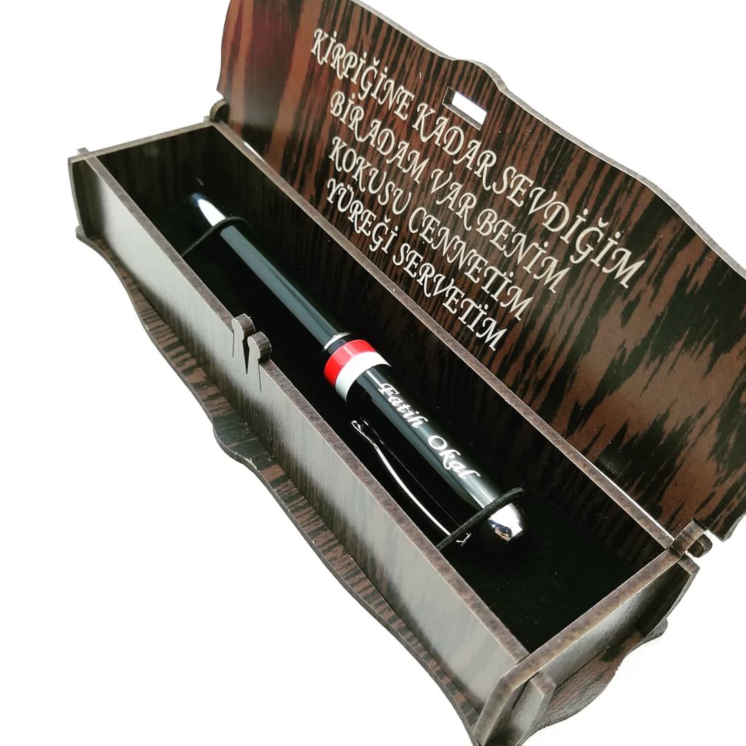 Hediyelik Kalem Kişiye Özel İsimli Ahşap Kutulu