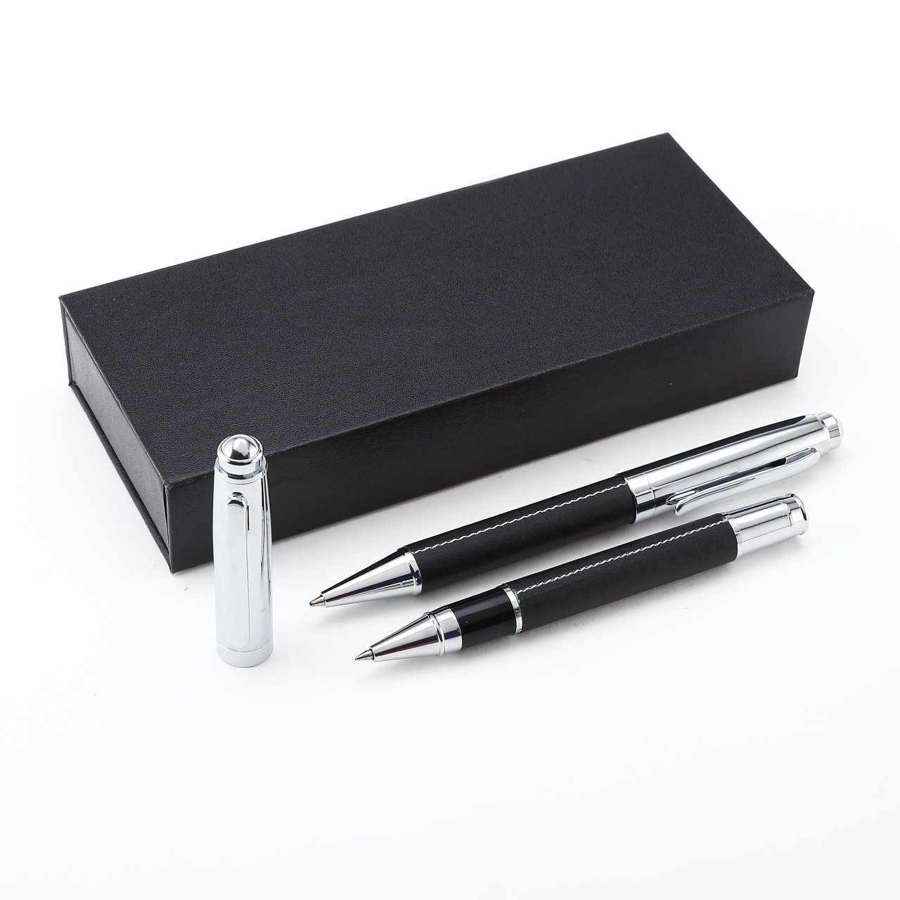Metal Kapak, Suni Deri Roller ve Tükenmez Kalem Set,