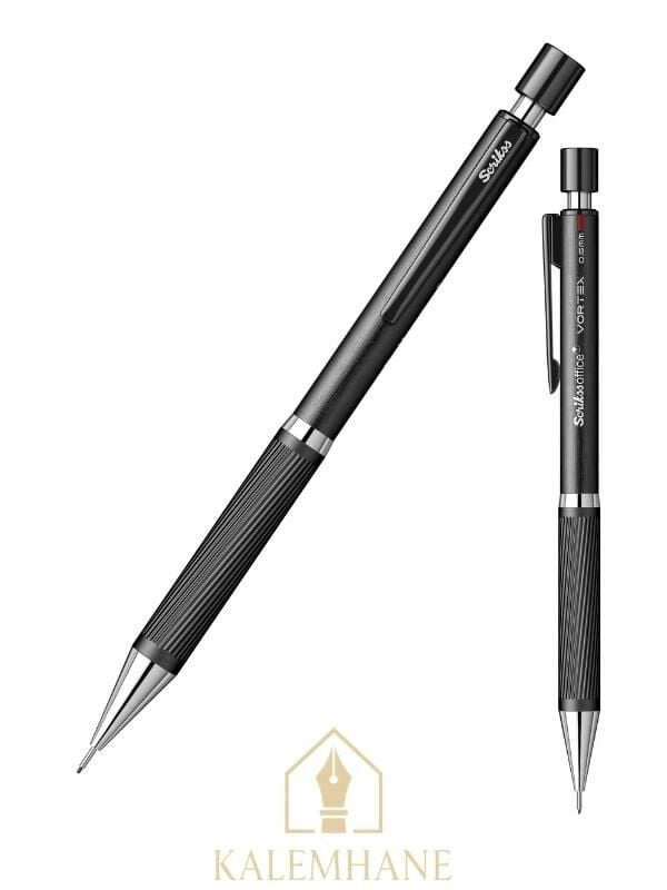 Yeni Scrikss Office Vortex, bakışları üzerine çeken ve işlevsel sadeliği sofistike bir tasarımla birleştiren yeni mekanik kurşun kaleminiz. Yeni Vortex bizi içine çeken ve sürekli bir hareket ile yaratıcılığa götüren gücü çağrıştırıyor. Yazma sanatını modern teknoloji ile bir araya getiren Vortex, fikirlerini ve hayâllerini çizim, taslak veya yazıya dönüştürenler için, hafif gövde tasarımı ve 0.5 mm ya da 0.7 mm uç alternatifleriyle mükemmel bir yazı gereci olarak öne çıkıyor.