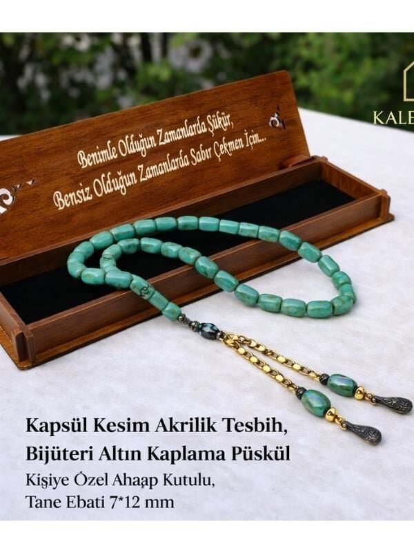Kapsül Kesim Model Ahşap Kutulu Akrilik Tesbih ( Toz kehribar)