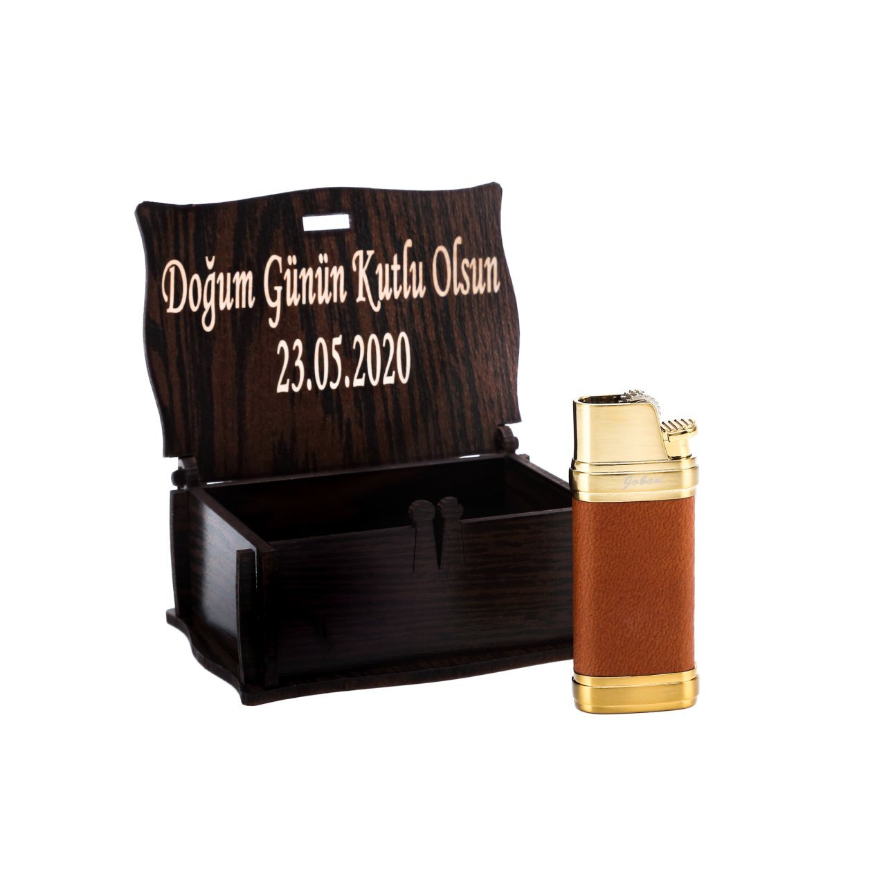 Kişiye özel deri yüzey metal gazlı çakmak, Ahşap kutulu