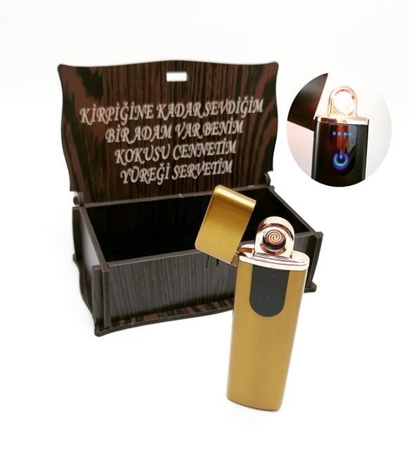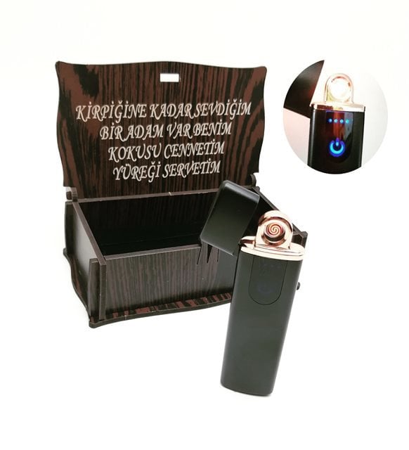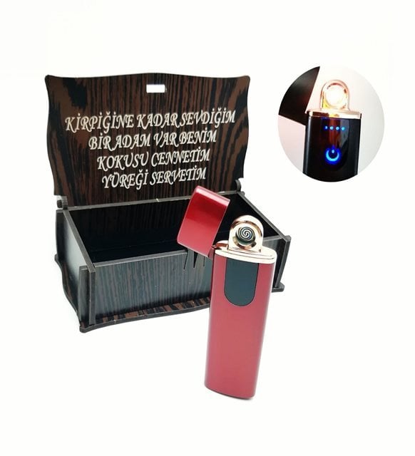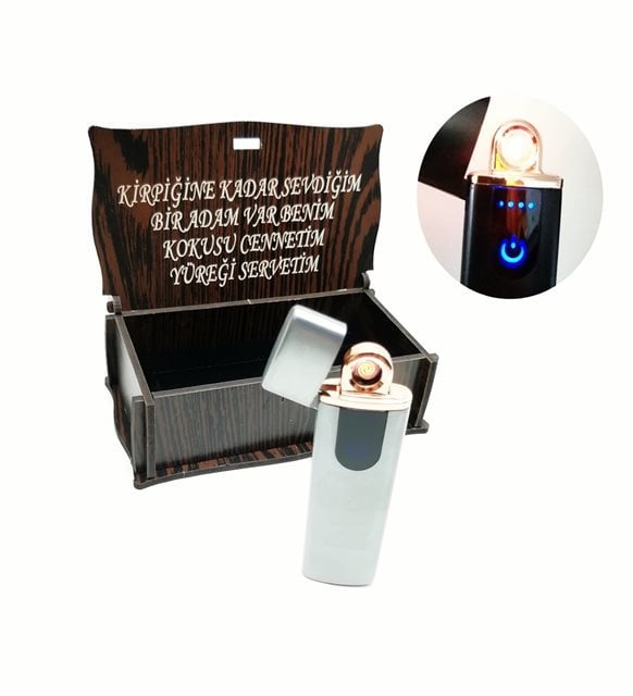 Kişiye Özel Şarjlı Çakmak Ahşap Kutulu