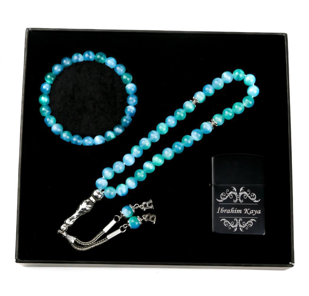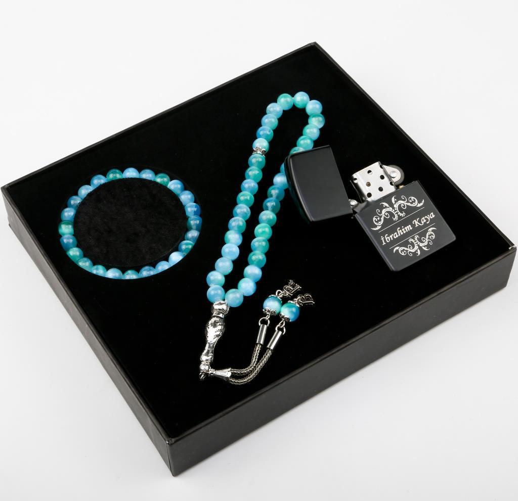 Kişiye Özel Tesbih - Çakmak - Bileklik Seti Özel Kutulu