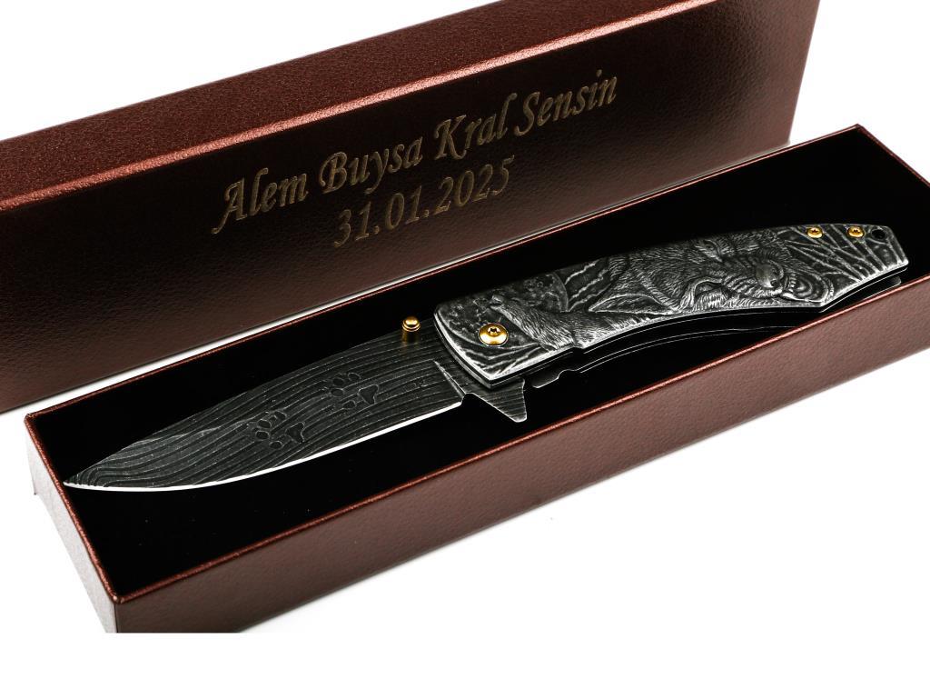 Kurt Kabartma Model Kişiye Özel Çakı Kutulu