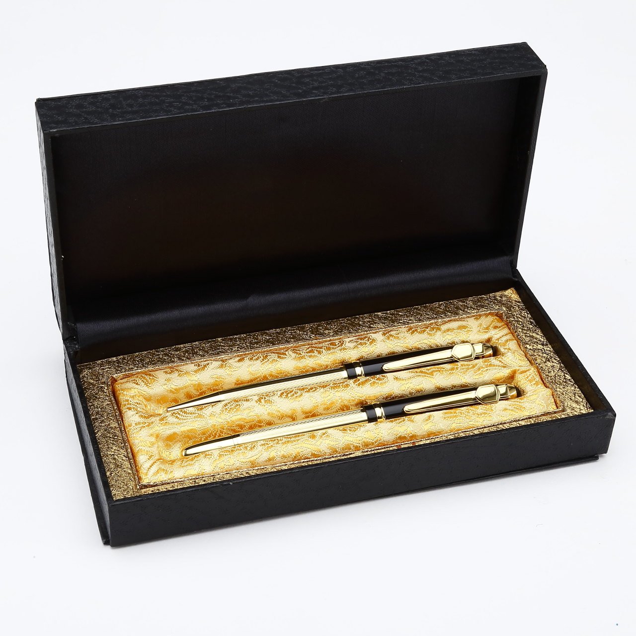 Gold kaplama kasa , parlak siyah kapak Roller ve Tükenmez Kalem seti , Lüks deri kutulu ,