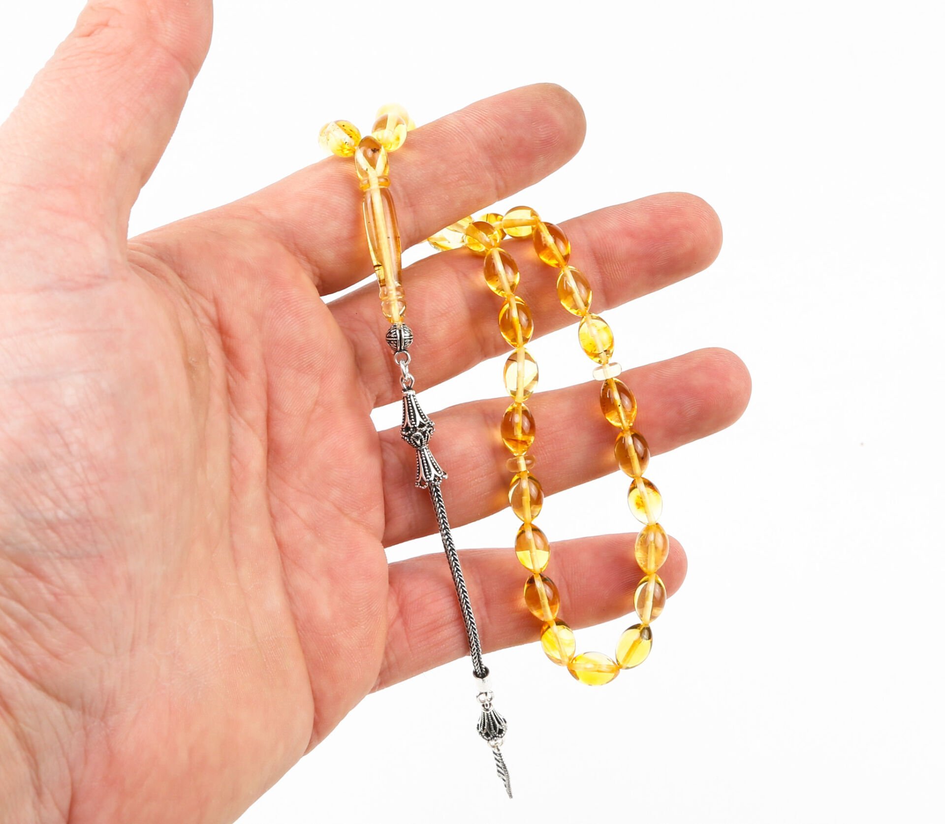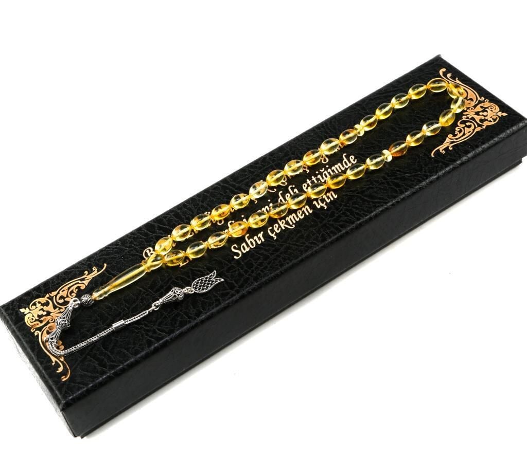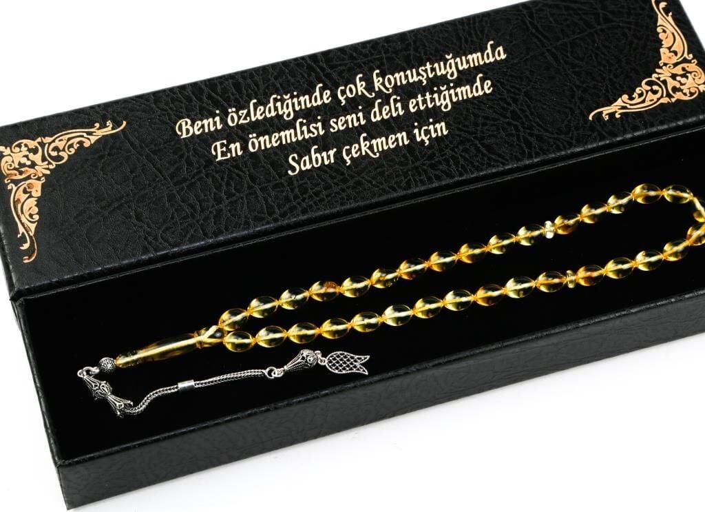 Orjinal KEHRİBAR TESBİH GÜMÜŞ PÜSKÜL LÜKS KUTULU
