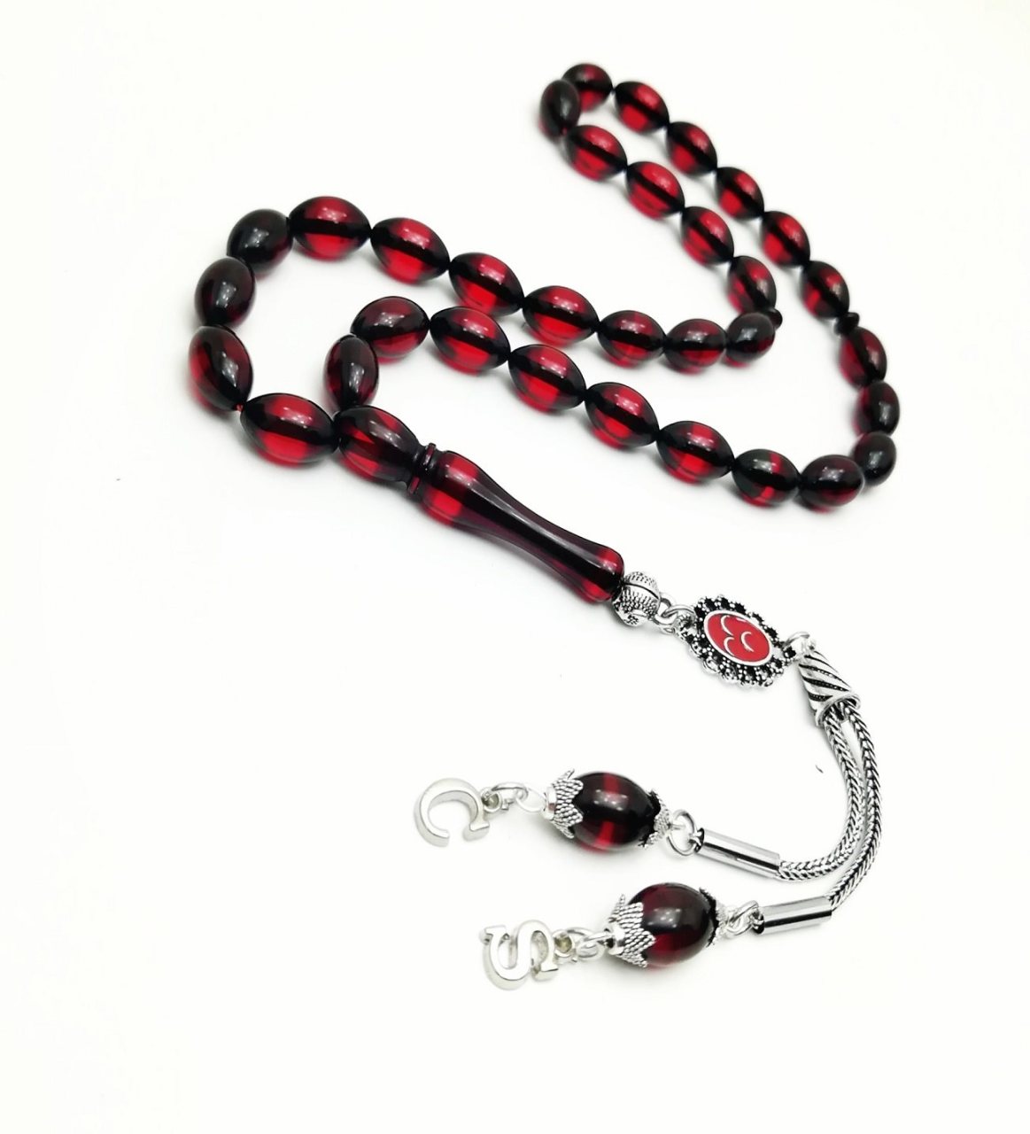 Arpa kesim toz kehribar tesbih Gümüş kaplama püskül özel mineli üç hilal