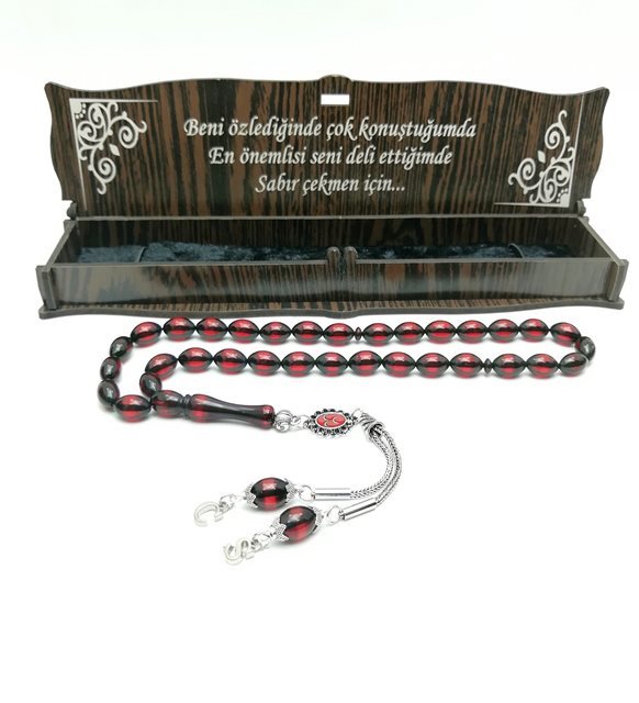 Özel Ahşap Kutulu Toz Kehribar Tesbih