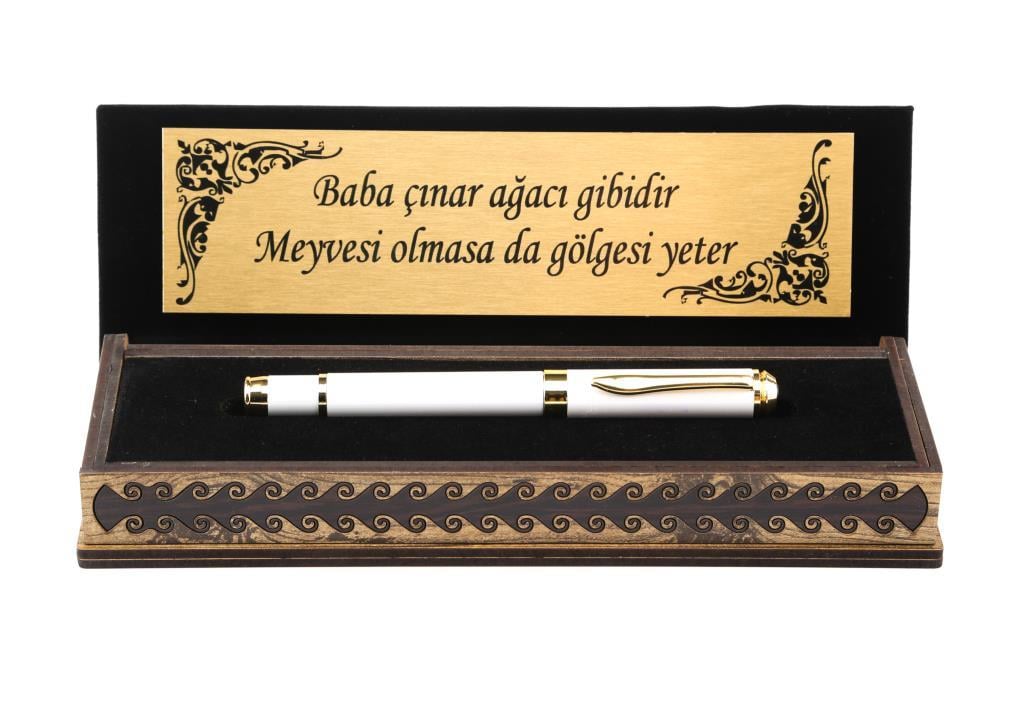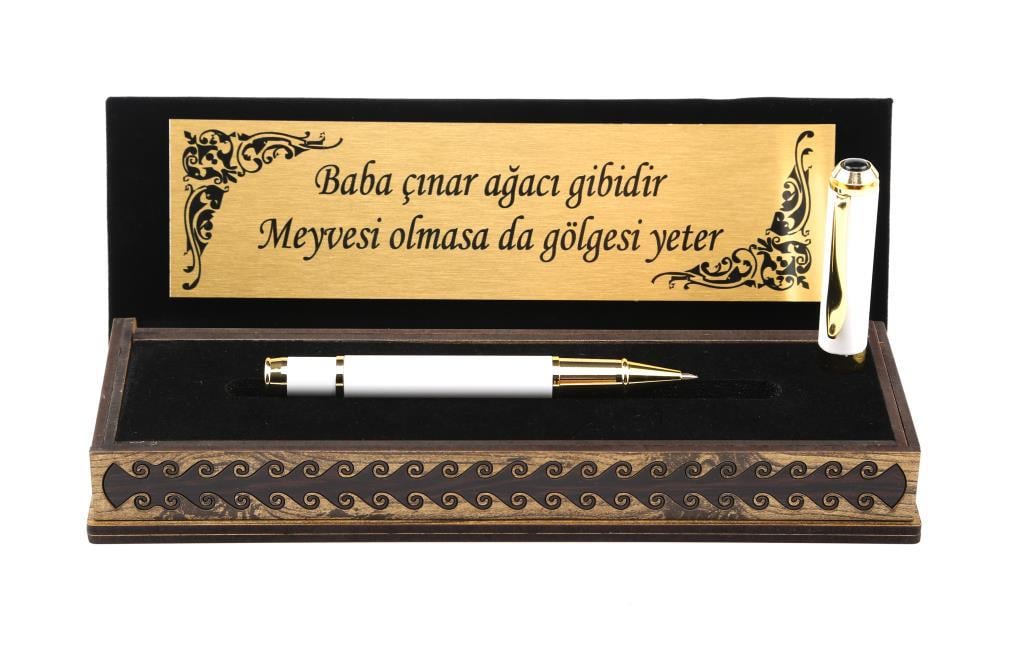 Özel Kutulu Roller Kalem Beyaz İnci