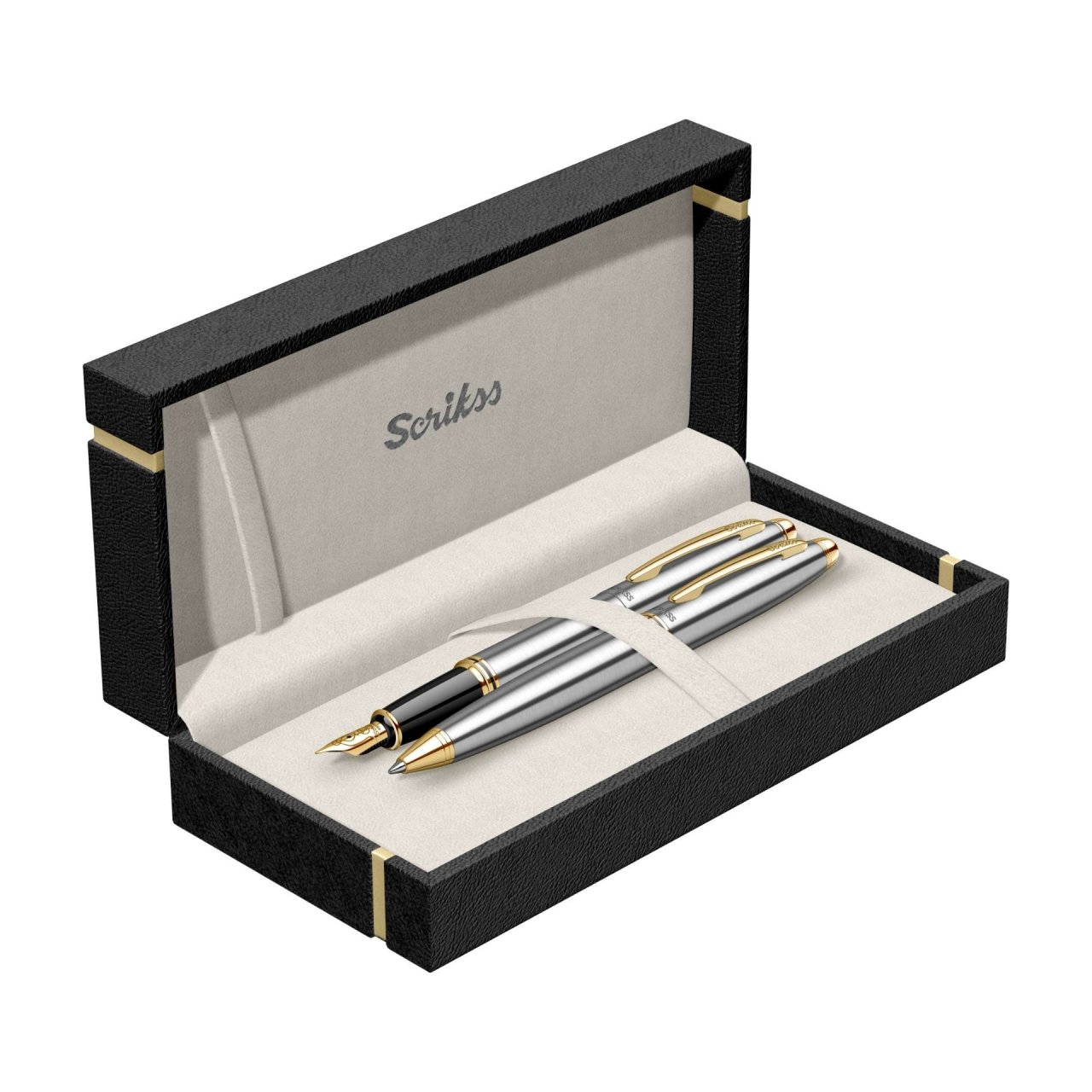 BABALAR Günü Hediye Kalem Scrikss Gold Krom Dolma ve Tükenmez Kalem Seti