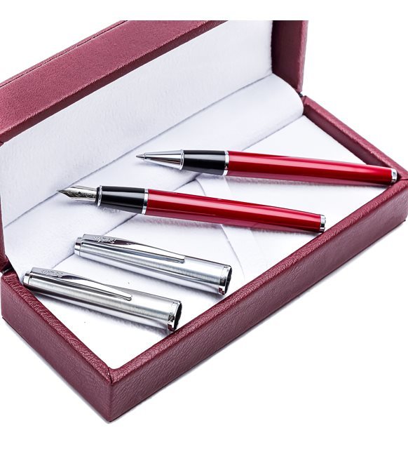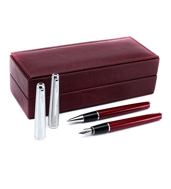 Bordo kasa roller ve dolma Kalem seti , özel lüks deri kutulu