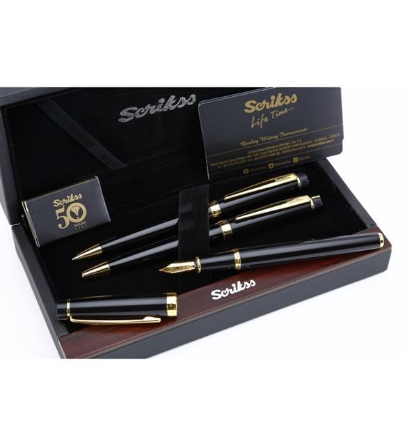 Scrikss Marka Siyah Altın 3 lü Kalem Seti