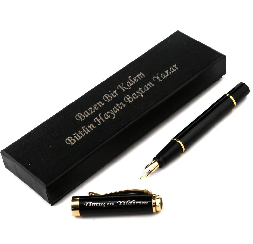Parlak siyah kasa ve kapak Dolma Kalem ,