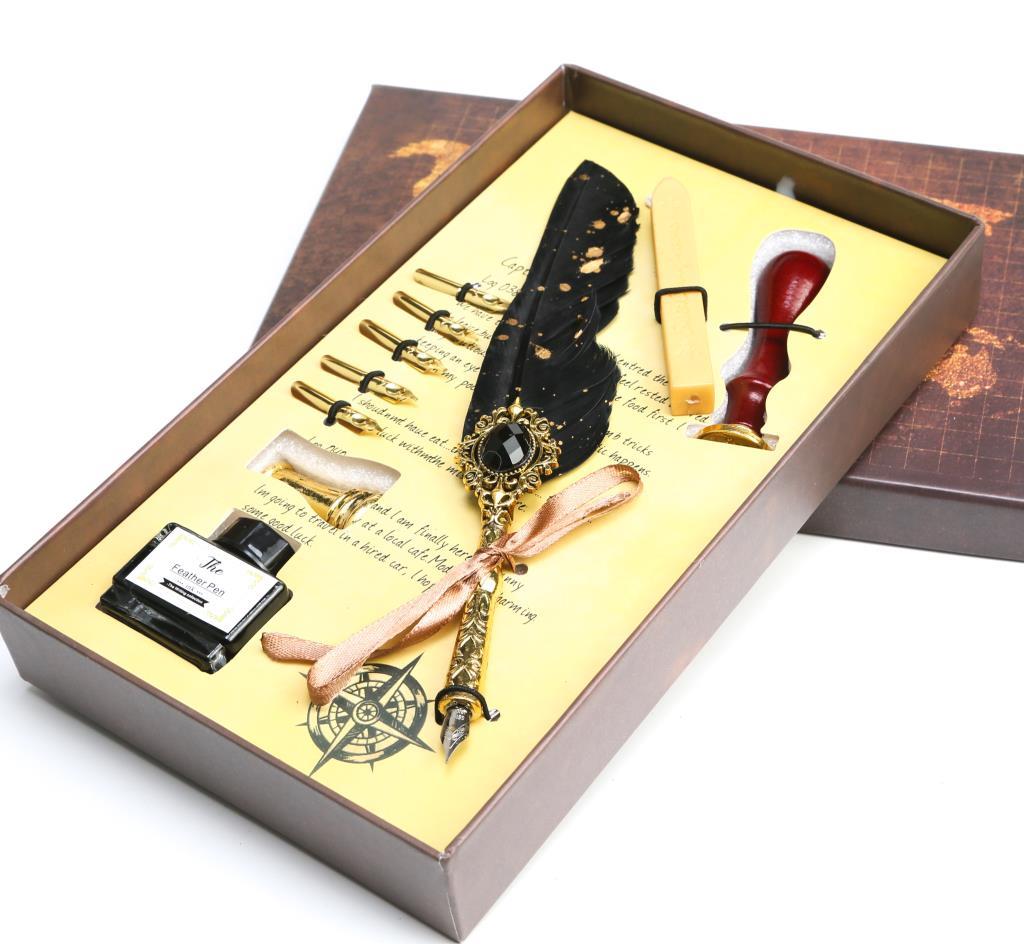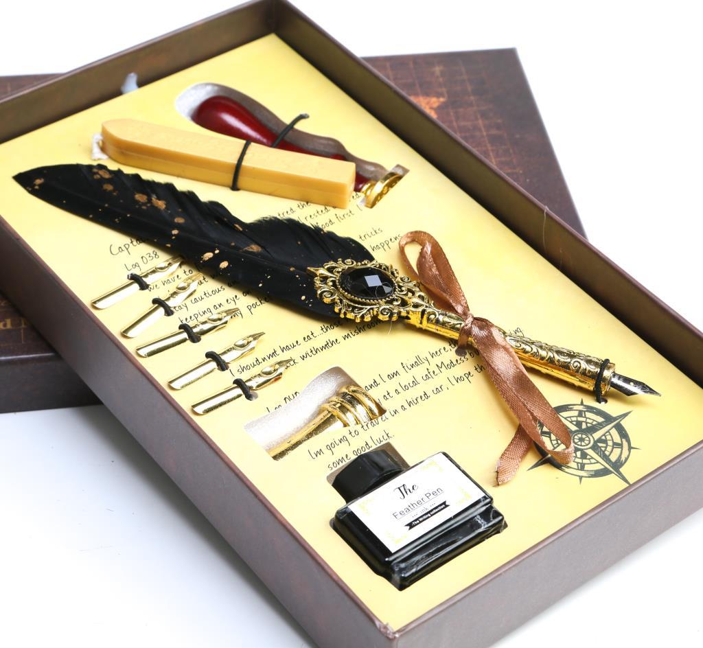 Lüks karton kutuda Kuş Tüyü damgalı model DOLMA KALEM